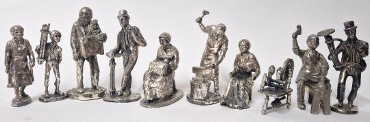 A set of white metal filled factory worker models, together with two pewter examples. (10)