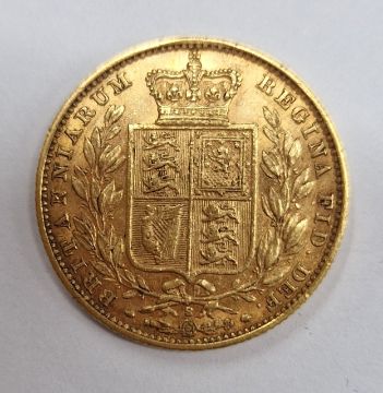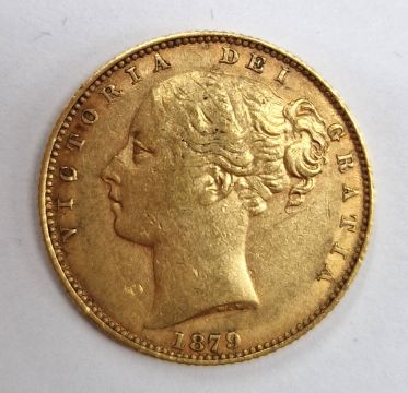 A Victoria full sovereign, shield back, with young head, 1879.