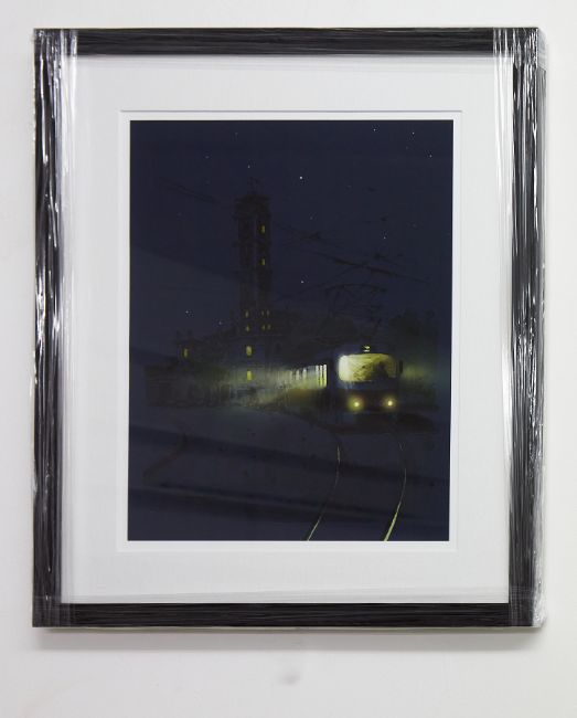 Tatyana Karmazina, Ukraine - Kharkiv / Dnipro. Poster sized print titled 'Three, Tram during Blackout'. 'Three' is an area of Kharkiv and a well known fire station. 35 x 26.5cm