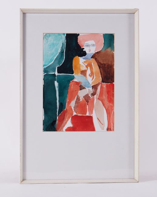 Framed painting - untitled 'Woman' 1990, w/c on paper, 50cm x 34cm