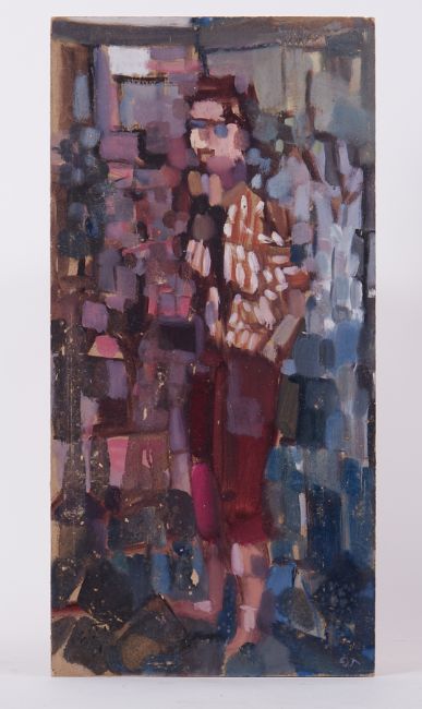 Unframed painting titled 'Woman in Striped Blouse', 1957, oil/cardboard, 61cm x 30cm