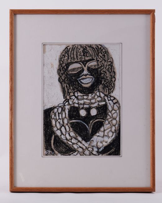 Framed drawing - untitled 'Deity Figure' 1992, conte on paper, 52cm x 41cm