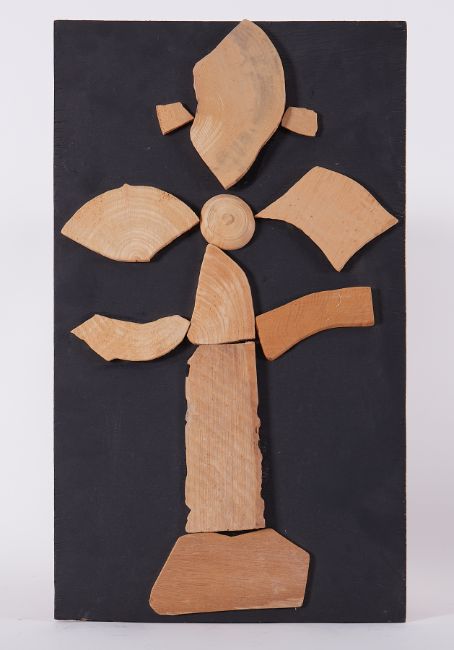 Wood Collage - untitled 'Wood Collage Figure/plant' 2006, wood collage, 45cm x 30cm