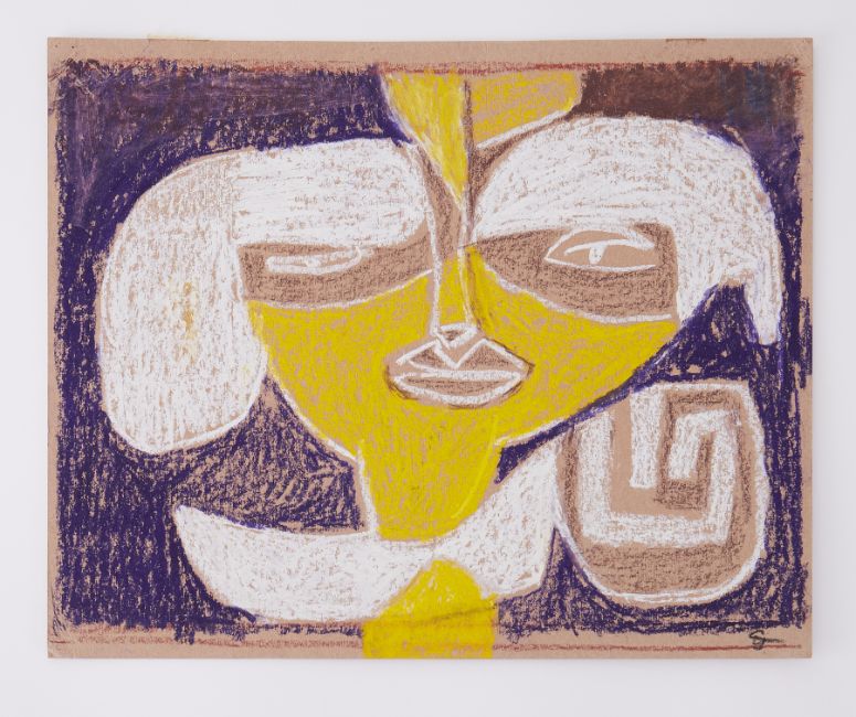 Unframed pastel on paper - untitled 'Fem Goddess Head' 1990s, unframed pastel on paper, 30cm x 38cm