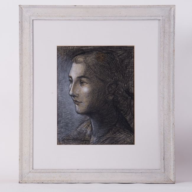 Framed conte on paper titled 'Bette' 61cm x 54cm