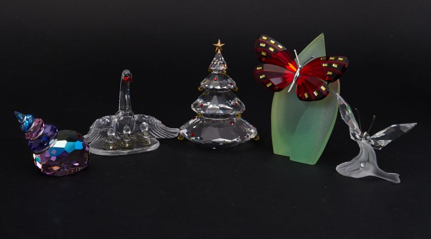 Swarovski Crystal Glass, 'Butterfly on Leaf', 'Swan Family' etc, all boxed.