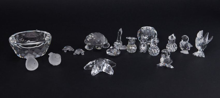 Swarovski Crystal Glass, a collection of fourteen crystal including 'Birds In The Bird Bath', 'Rabbit', 'Chic' etc, all boxed (some damages).