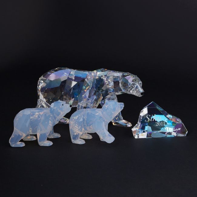 Swarovski Crystal Glass, annual edition 'Siku Polar Bear and Polar Bear Cubs White Opal' 2011, all boxed.