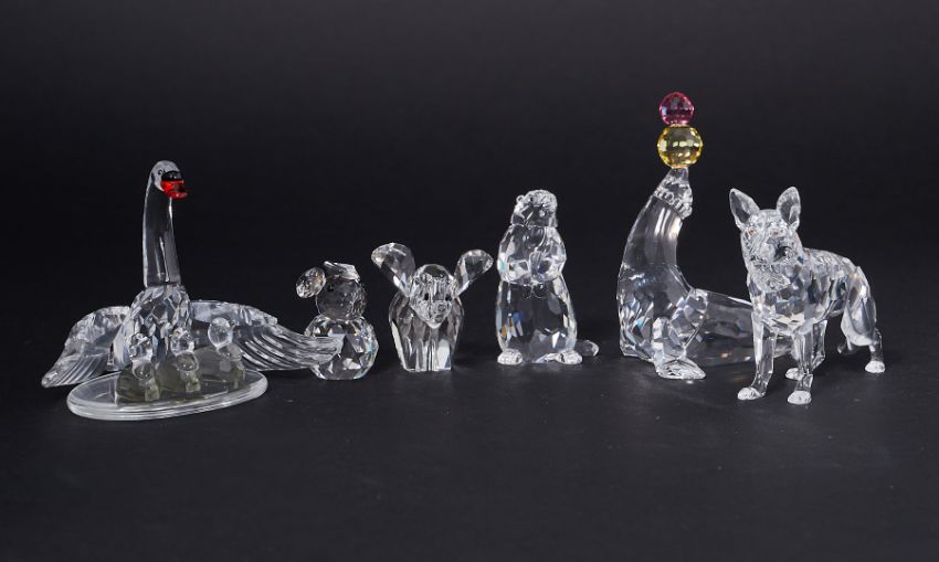 Swarovski Crystal Glass, a small collection of six pieces including 'Elephant - Small', 'Squirrel' etc, boxed.