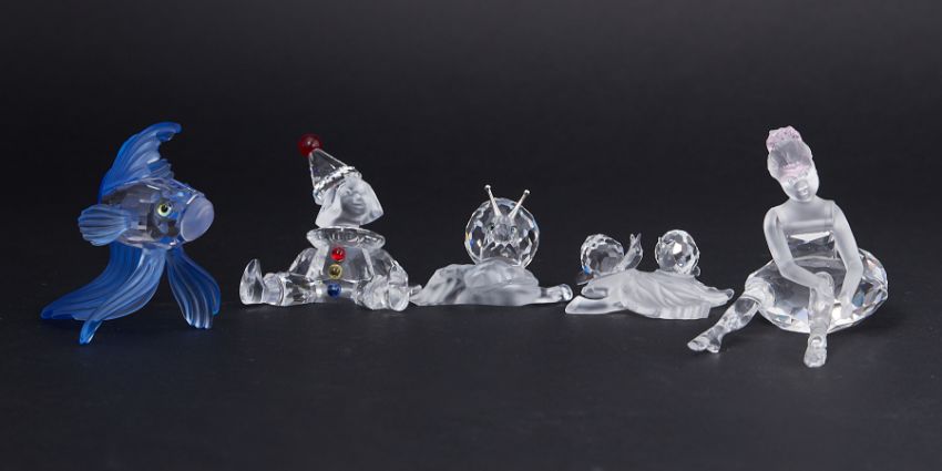 Swarovski Crystal Glass, a small collection including 'Clown', 'Snail on Leaf', 'Siamese Fighting Fish-Blue' etc, all boxed (clown missing eye).