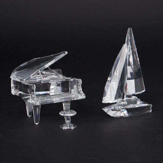 Swarovski Crystal Glass, 'Sailing Boat' and 'Piano and Stool', boxed (some damage).