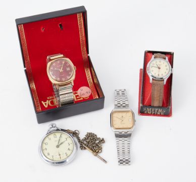 A smiths open face pocket watch, a Smiths empire vintage wristwatch, Tissot wristwatch and Sekonda wristwatch (4).