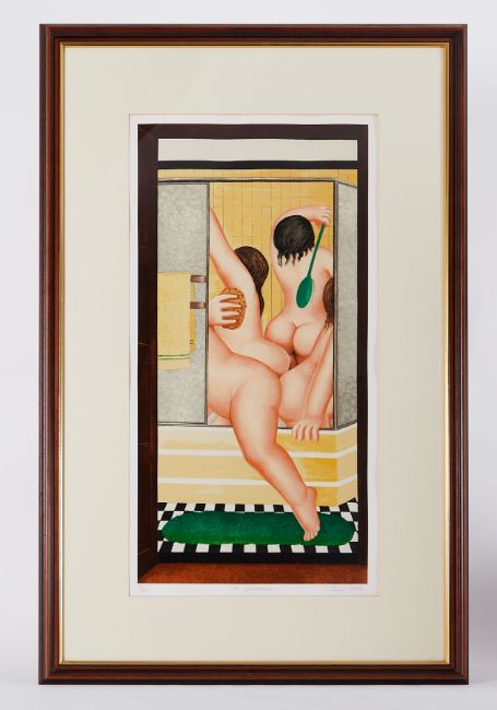 Beryl Cook (1926-2008) 'A Bathroom' signed limited edition print 11/300, 68cm x 34cm, framed and glazed.