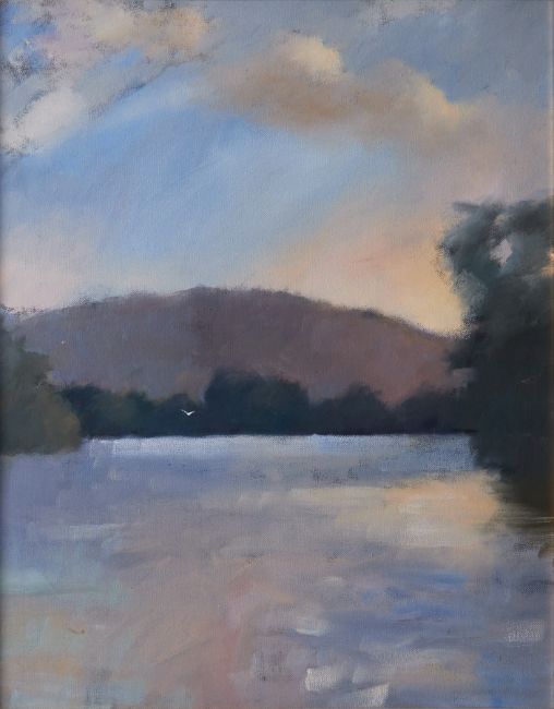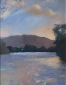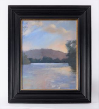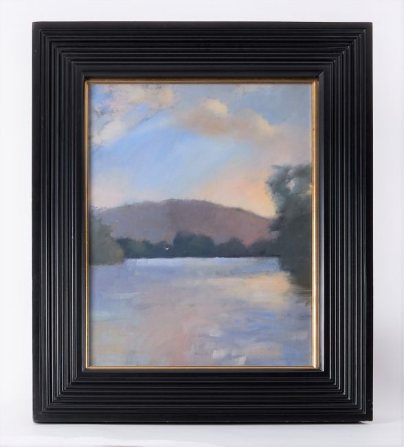 Robert Lenkiewicz (1941-2002) oil on canvas 'Estuary, Early Evening', signed and titled on reverse, also inscribed 'Project 19', framed and glazed, 57cm x 46cm, overall size 74cm x 63cm. Provenance - acquired directly from the artist by the sellers family, this painting was No 2 of 38 works painted for Project 19 - Landscapes - The Painter as Jerome.