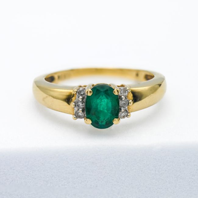 A gold diamond and emerald ring (unmarked but in our opinion possibly 18ct), size N.