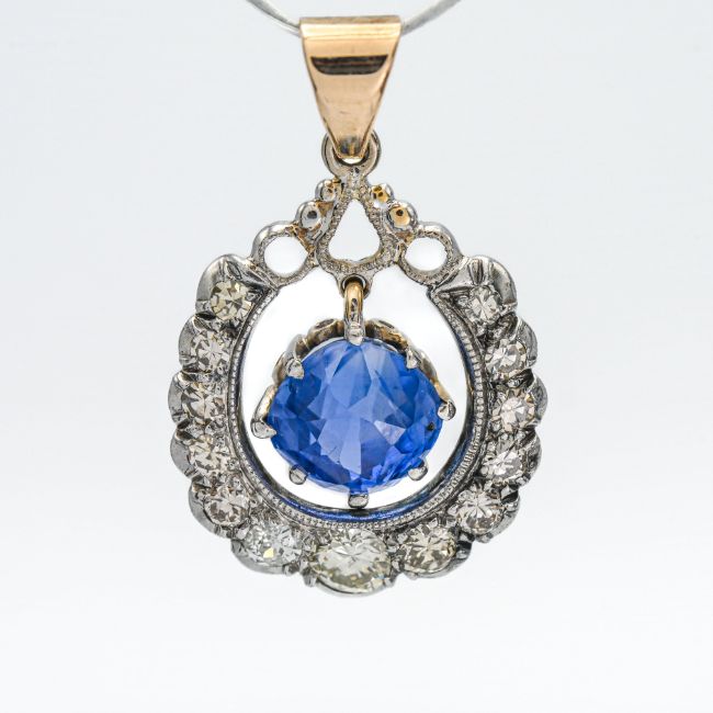 A diamond and tanzanite drop pendant (not hallmarked).