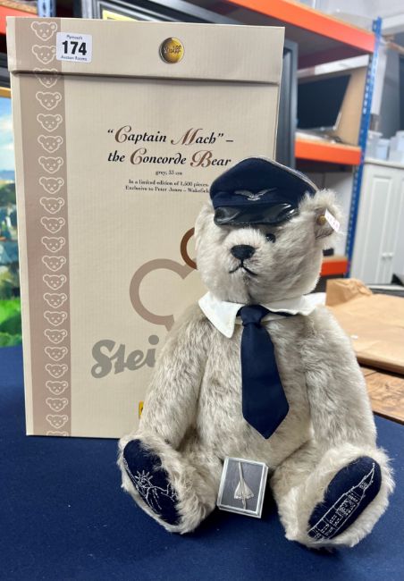 Steiff, 'Captain Mach, The Concorde' grey, 33cm, boxed.