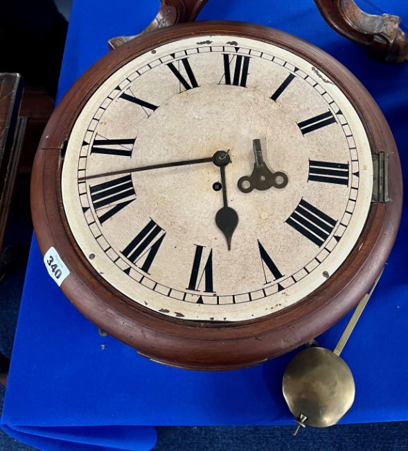 Victorian mahogany dial clock, 38cm (lacks glass)