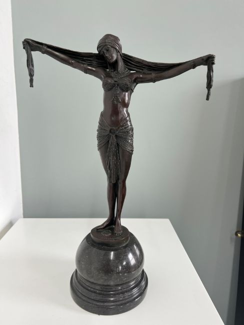 After Chiparus, a signed bronze Art Deco sculpture on marble base with foundry stamp, height 40cm.