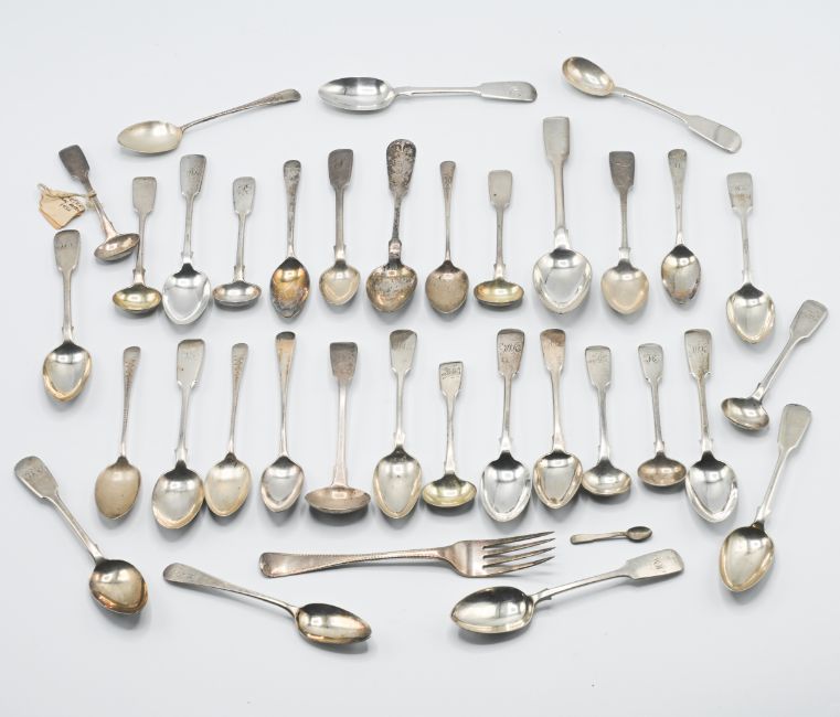A selection of silver teaspoons, plus some other items of cutlery, Exeter, total weight 18.35oz