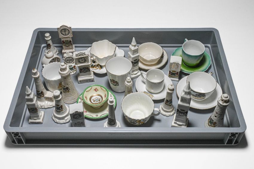 Collection of Plymouth Crested Ware, 26 pieces Eddystone Lighthouse, Derry's Clock and a variety of Cups and Saucers
