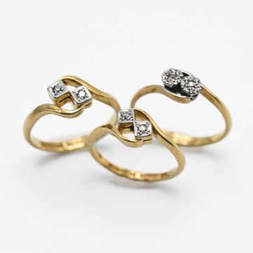 Three 18ct yellow gold and diamond illusion set rings, approx. 8.5g (3).