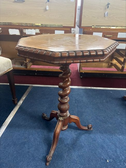 A walnut tripod table, (2) mahogany side table.