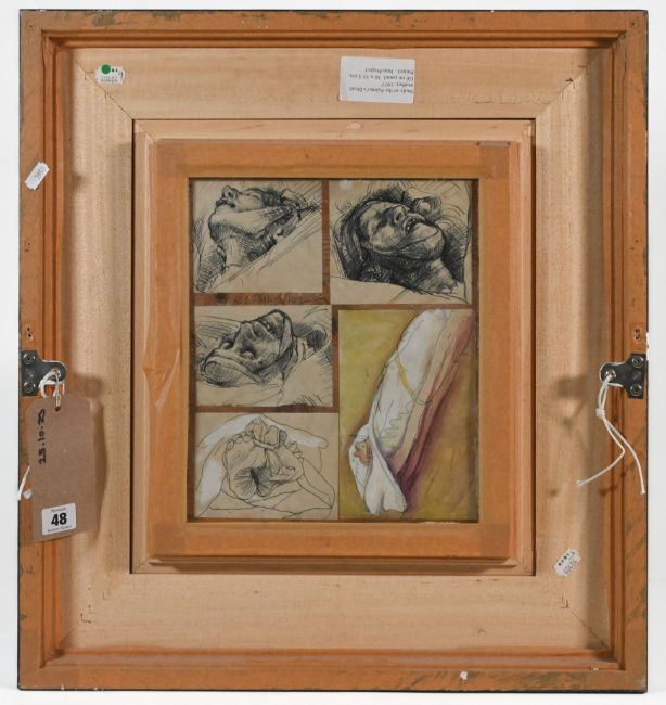 Robert Lenkiewicz (1941-2002) Study of the Painter’s Dead Mother. Year: 1977, Medium: Cryla on board, with verso associated sketches on paper, Size: 29 x 24 cm, overall size 58cm x 53cm.
