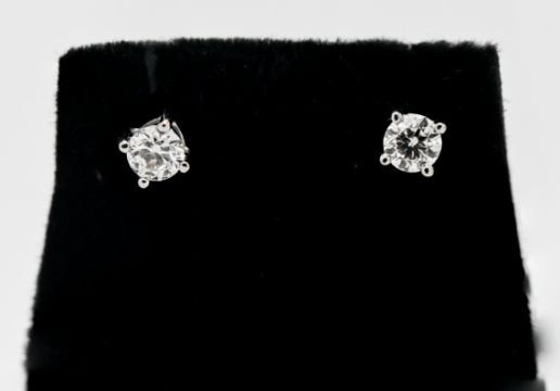 A pair of 18ct white gold single stone diamond studs, approx. 0.60 points in total.