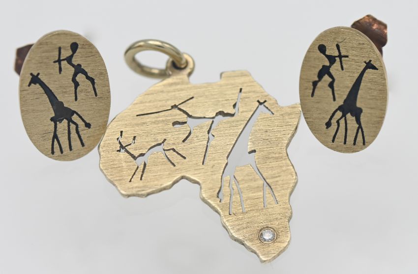A pair of 14ct gold earrings and a 14ct gold pendant with a small diamond (African), approx. 5.6g.