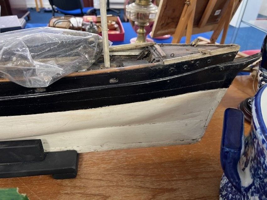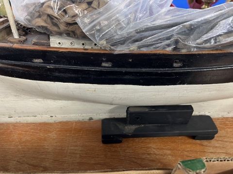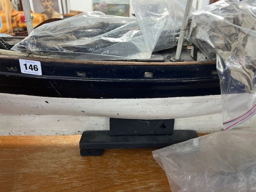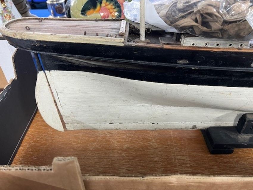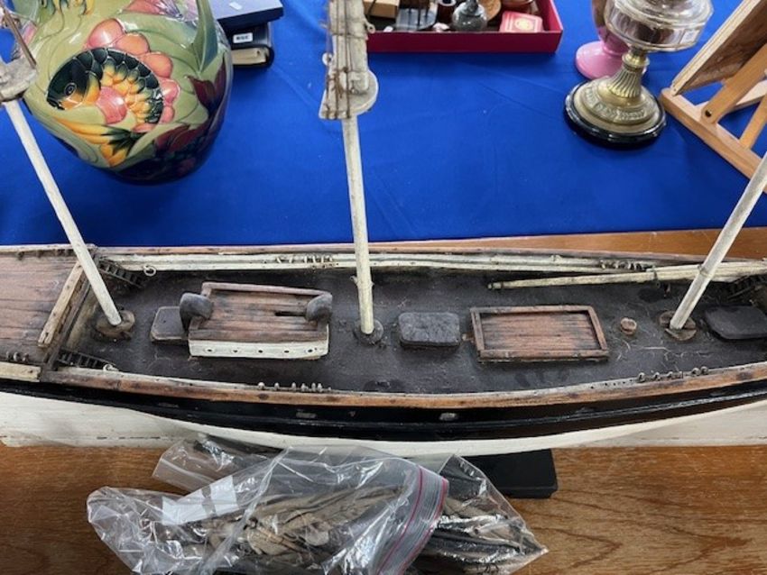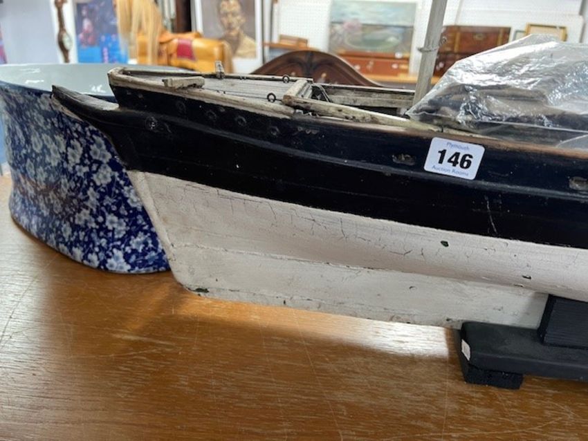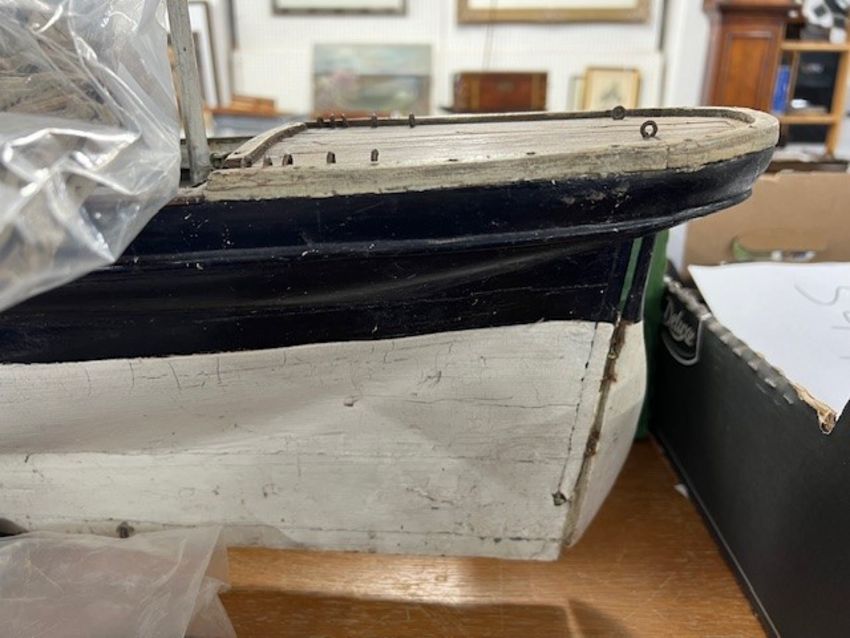 A rare 19th century fully rigged clipper ship pond yacht, straight line, with original spurs and rigging, fitted with a lead keel, length 97cm.