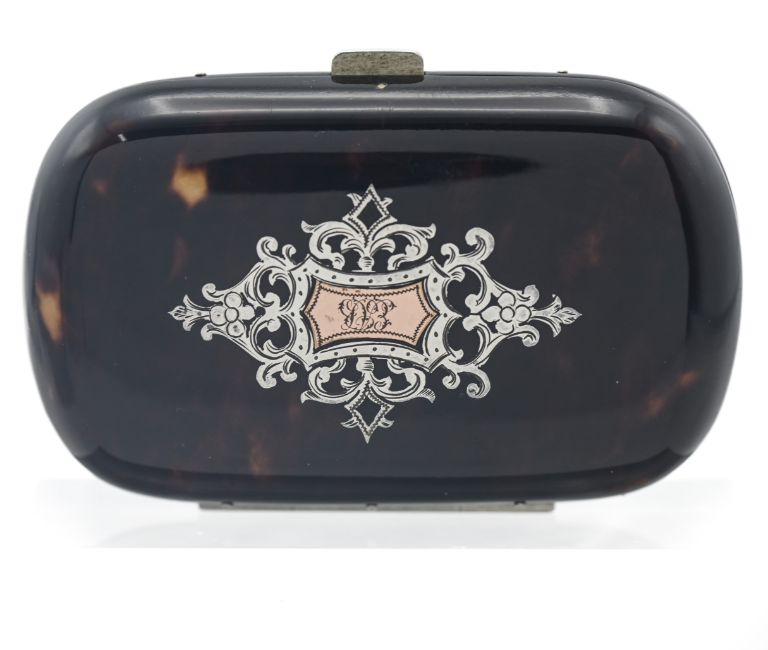 A 19th century tortoiseshell silver and gold pique inlaid purse, width 8cm.