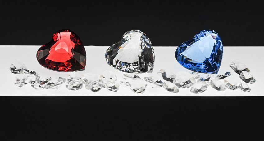 Swarovski Crystal Glass, Collection of hearts, to include Red Heart, Blue Heart and Clear Heart with a pouch of small hearts, boxed.