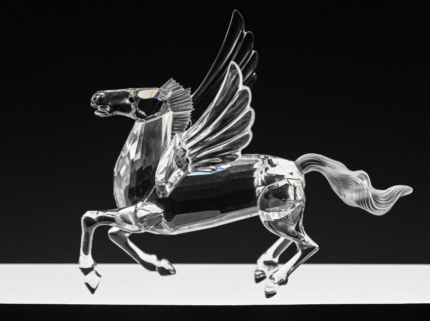 Swarovski Crystal Glass, 1998 Fabulous Creatures 'The Pegasus' with stand and plaque, boxed.