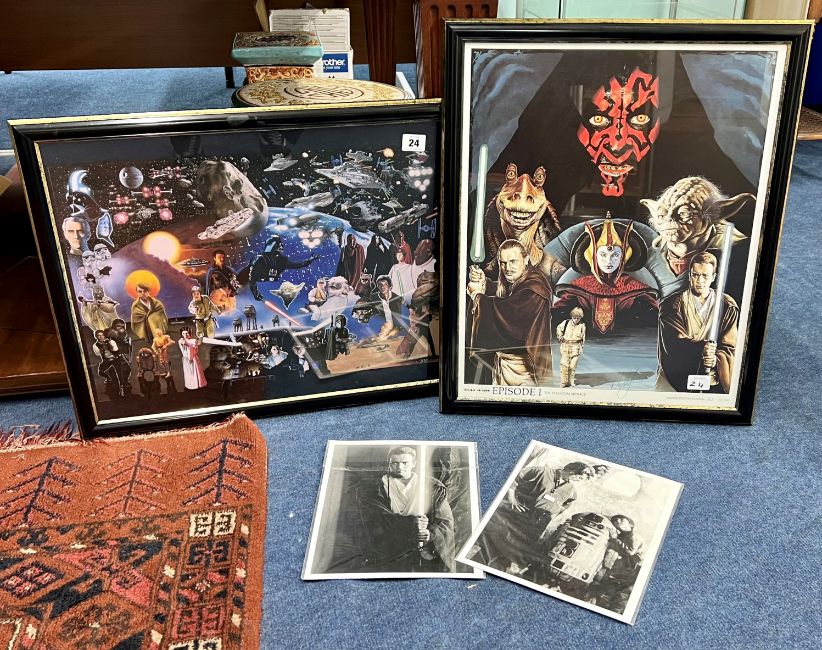 A set of two Star Wars limited edition prints with certificates, along with two black and white photographs.