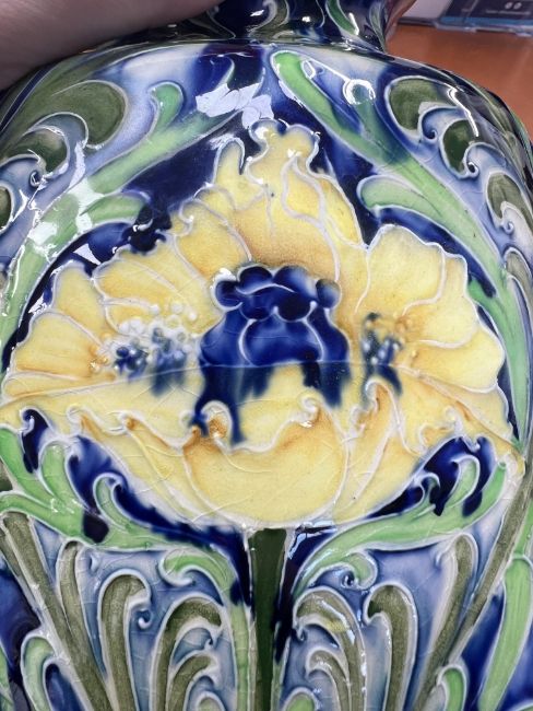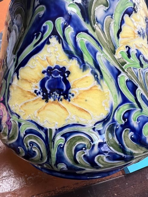 A William Moorcroft Florian ware vase decorated with yellow cornflowers, 21cm height, circa 1913.