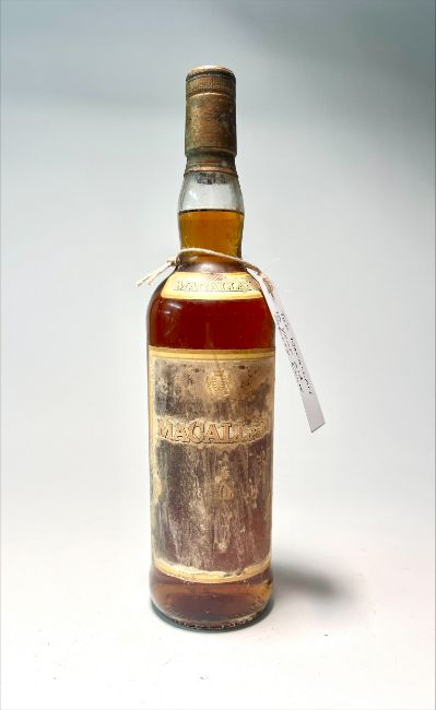 A bottle of The Macallan Sherry Oak Matured Whisky, aged 10 years, distressed label.