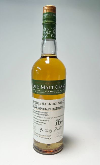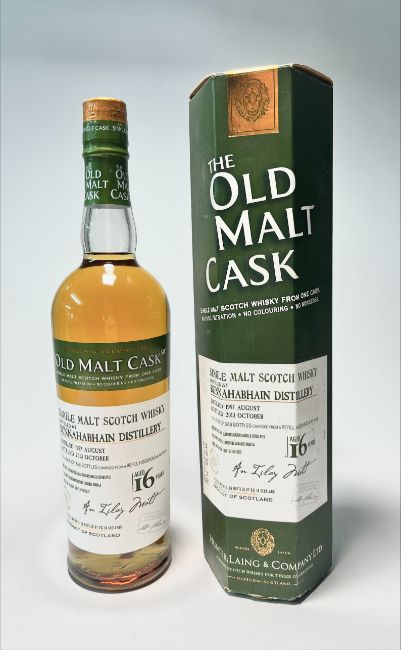 A bottle of The Old Cask Single Malt Scotch Whisky, distilled at Bunnahabhain Distillery (est. 1881), Hunter Laing Company, distilled August 1997 and bottled October 2013 (16 years old), one of 348 existing bottles, product of Scotland, natural colour and no chill filtration, with box, 70cl.