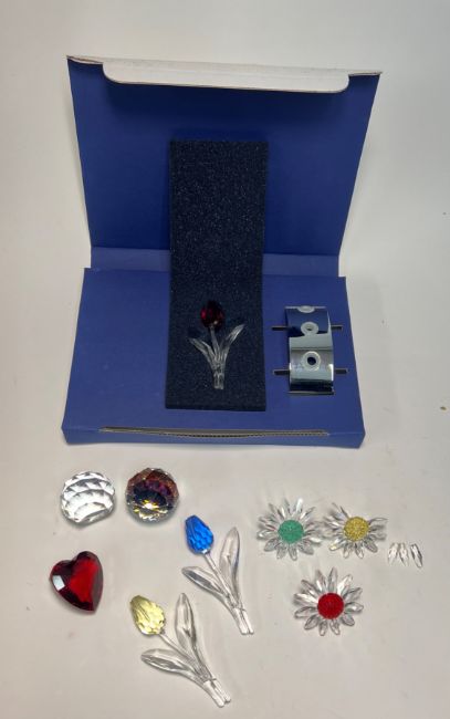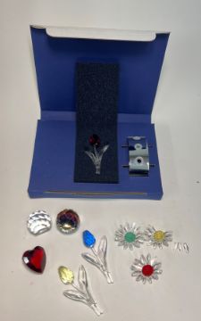 Swarovski Crystal Glass, mixed lot to include Tulips, Red Heart etc (green flower chip to leaves, yellow broken leaves).