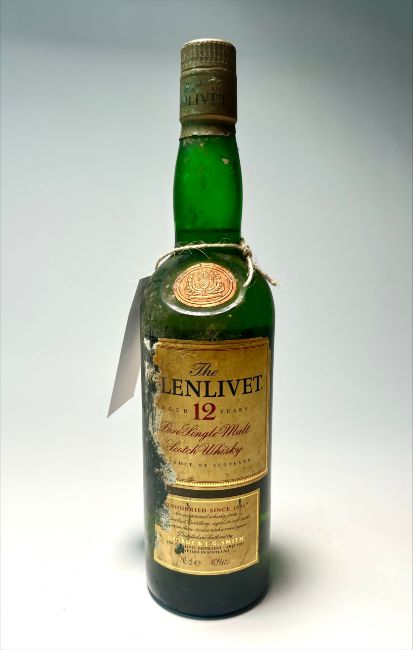 A bottle of Glenlivet Pure Single Malt Scotch Whisky, aged 12 years, distilled in Scotland, distressed label, 70cl.