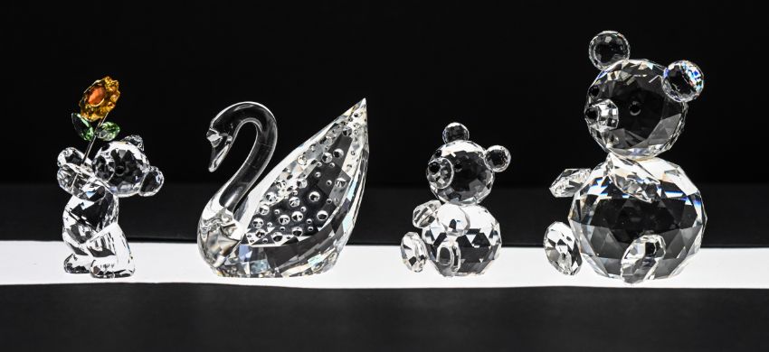 Swarovski Crystal Glass, Mini Bear, Kris Bear- A Sunflower For You, Large Bear (head reglued).