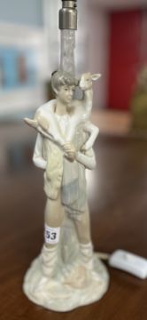 Lladro, table lamp, modelled with a figure of a young man with a goat, height is 40cm.