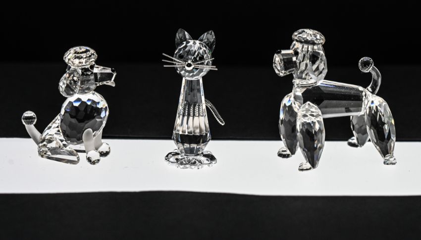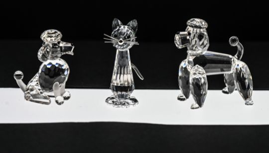 Swarovski Crystal Glass, Poodle, Cat and Large Poodle (3), boxed.