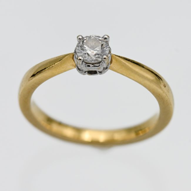A diamond sing stone engagement ring, set in 18ct yellow gold, size N.