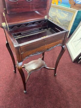 Mahogany 'Campaign' style desk with writing interior with fitted compartments leathered, with key, width 55cm,