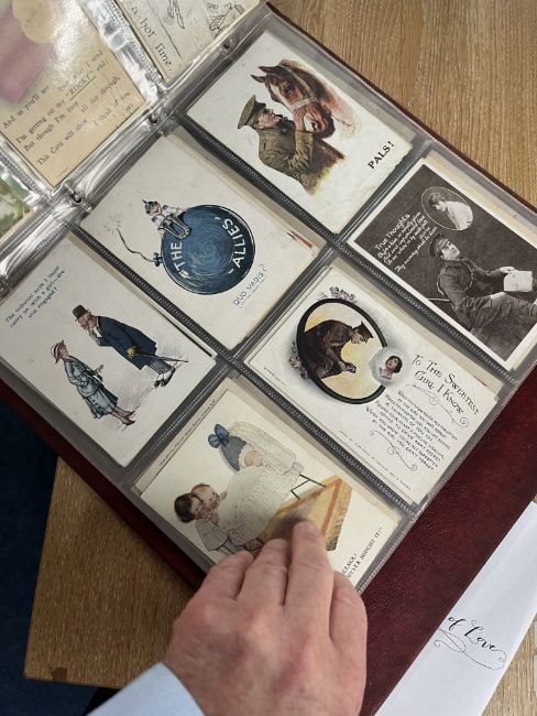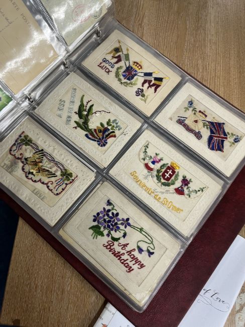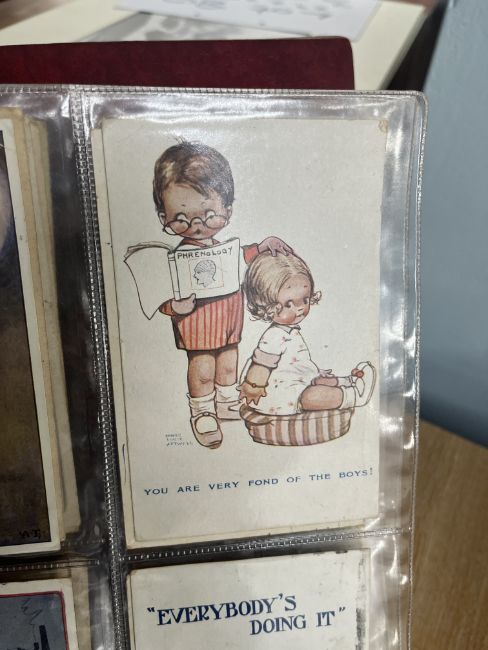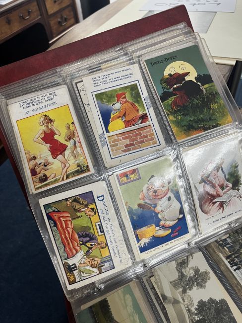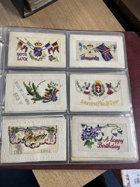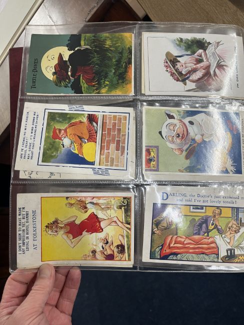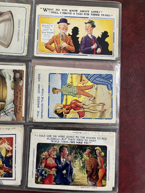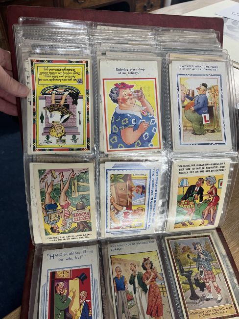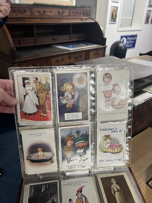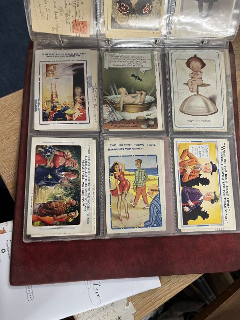 A collection of Edwardian and later postcards including real photographic views Strathmore Alta, Ivy Street, Killarney, Great Yarmouth, First World War silk postcards, humorous cards including Donald McGill, Mabel Lucie Attwell, Great War postcards, also loose cards etc, approx. 300.