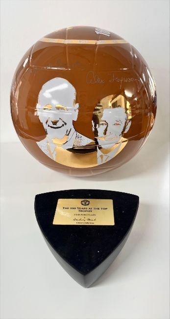 A Manchester United fine porcelain 'The 100 Years at the Top' trophy, with plaque stand, boxed.