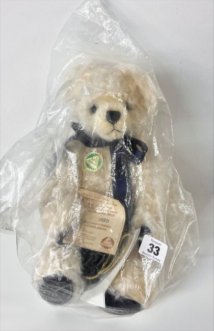 A Hermann Pluschtiere limited edition mohair Princess Diana Queen of Hearts teddy bear, number 1090/2450 (embroidered on foot) with tag and certificate, encased in plastic.