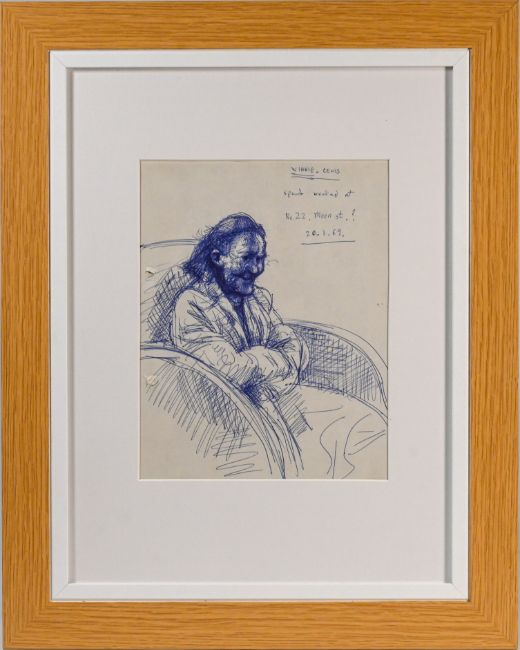 Robert Lenkiewicz (1941-2002) Winifred Lewis - 'Winnie'. 20.1.69. 255 x 205 mm, pen on paper, framed and glazed.