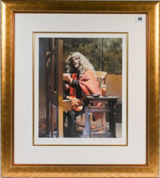 Robert Lenkiewicz (1941-2002) 'Self Portrait at Easel' signed limited edition print 248/500, with certificate of authenticity, 39cm x 32cm, framed and glazed.